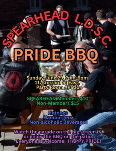 The BBQ hosted by SPEARHEAD will be during the Toronto Pride Parade on